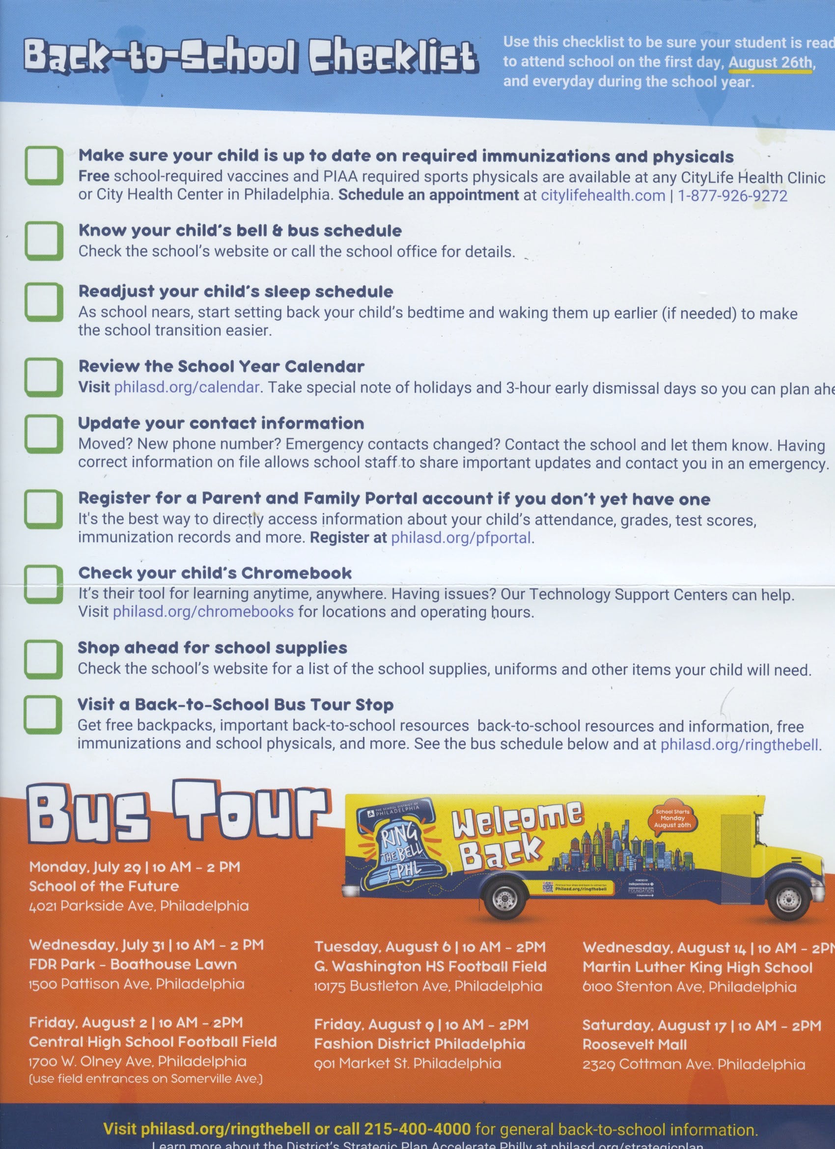 The Philadelphia School District has just put out their PR for their next Ring the Bell Bus Tour, its annual summer welcome back to school events. As has been this tour’s pattern, first on the agenda is a strong push to make parents believe that vaccines are a required ritual to allow their children to attend school. Nothing could be farther from the truth. The only requirement is that parents submit a statement that, for religious, personal, philosophical, strong moral reasons or medical reasons their child will not be receiving some or all vaccinations.