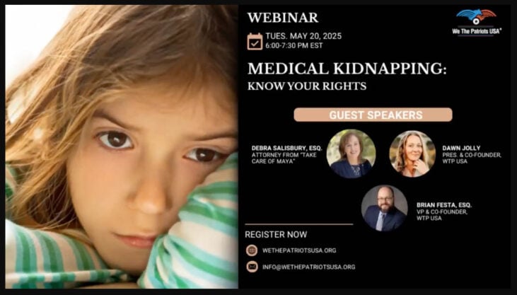 In this live, interactive webinar, we’ll dive into the frightening topic of medical kidnapping, discussing stories of children being stolen from parents by state agencies and hospitals, and explaining what you can do to prevent it. Featuring Attorney Debra Salisbury, who represented the Kowalski family featured in the Netflix documentary, “Take Care of Maya”, as well as WTP USA Co-Founders Dawn Jolly and Brian Festa, Esq.