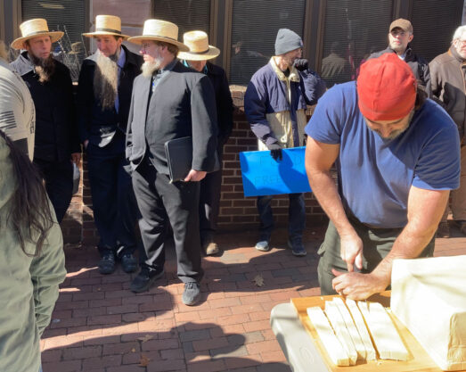 The crowd showing their support for Mr. Miller and for food freedom came from around the region and particularly from the Amish and Plain community of Lancaster and surrounding counties. There were also many members of the organic farm community who also showed their support by showing up in large numbers and offering supporters free raw milk and cheese and cartons of eggs.